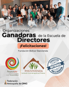 La Federación Antioqueña de ONG – FAONG celebra con orgullo a tres de sus organizaciones federadas que fueron seleccionadas entre las ganadoras para participar en la Escuela de Directores de la Fundación Bolívar Davivienda, un programa de formación que impulsa el liderazgo y la gestión de las organizaciones sociales del país.
